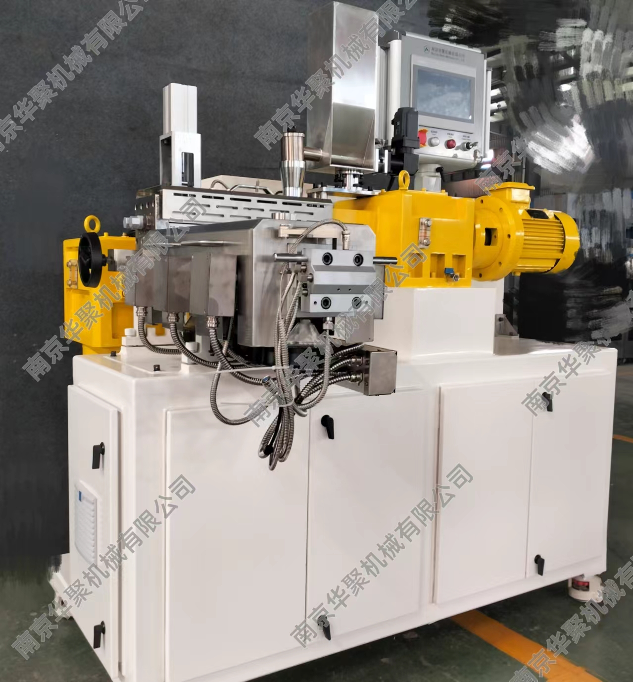1、占地面積小,主機長寬高為1600X1350X1650mm,帶有移動腳輪。 2、集成連續(xù)密煉與雙螺桿的優(yōu)勢特點,連續(xù)式擠出,方便各種研發(fā)測試使用。 3、能耗低,裝機裝機功率22KW,實際操作功耗更低,類似一臺中央空調(diào)功率。 4、產(chǎn)量范圍1-10Kg/h,方便少量物料測試,伺服電機喂料驅(qū)動更穩(wěn)定精確。 5、一體化設計,電控冷卻系統(tǒng)全部集成,無需額外安裝,接電即用。 6、連續(xù)密煉機可翻轉(zhuǎn)腔體和雙螺桿快開機頭設計,方便清理及檢查維護。 7、全系統(tǒng)安全連鎖,觸摸屏操作,多處安全停機保護,使用更放心。 8、整機1噸,方便裝卸。